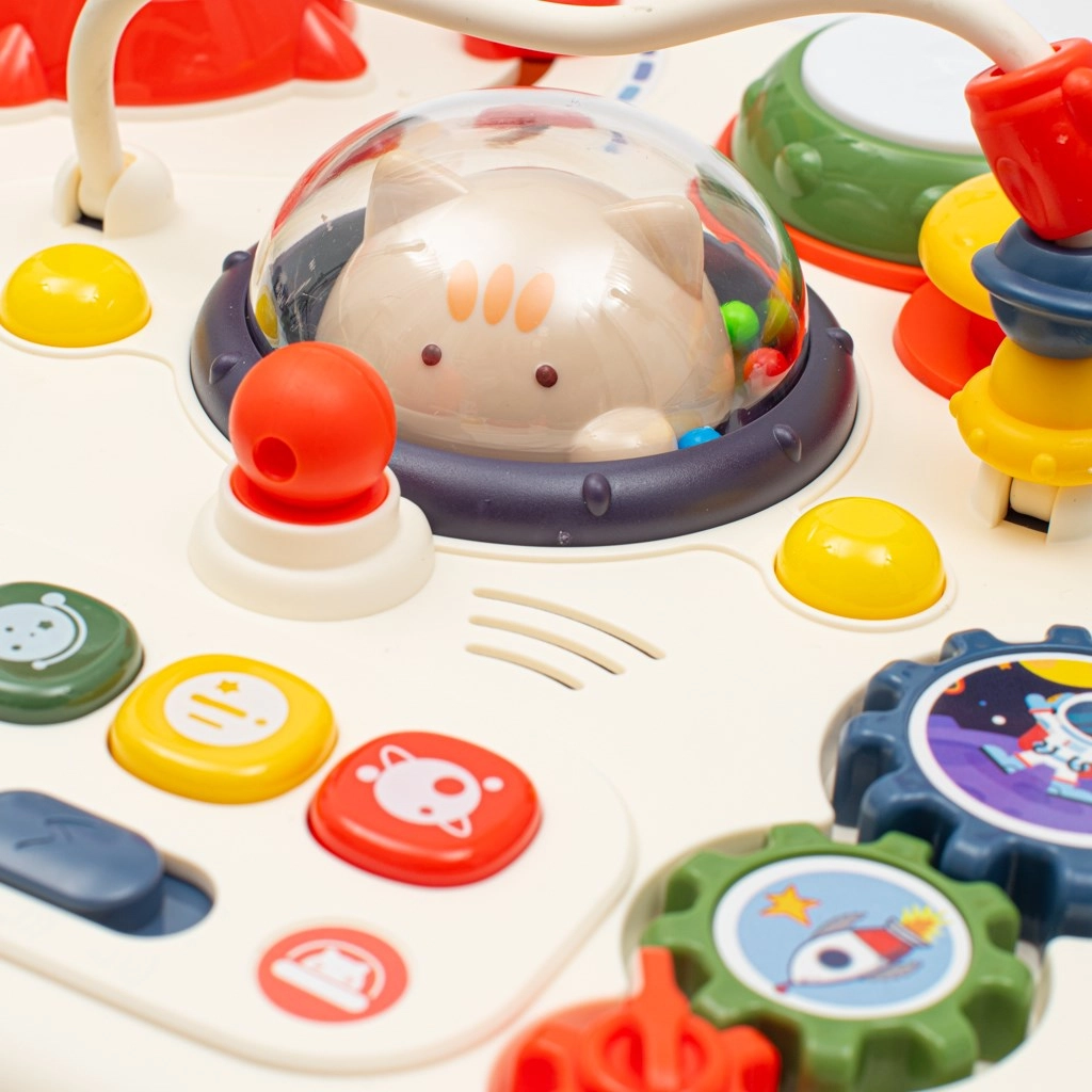 Interaktívny stolík BABY MIX kombinuje zábavu a učenie v jednom. Deti zaujmú svietiace tlačidlá, melódie, ozubené kolieska, prepínače aj posuvné prvky, ktoré prirodzene rozvíjajú koordináciu rúk, logické myslenie a kreativitu. Vďaka rôznorodým textúram a tvarom ponúka bohatú senzorickú stimuláciu.