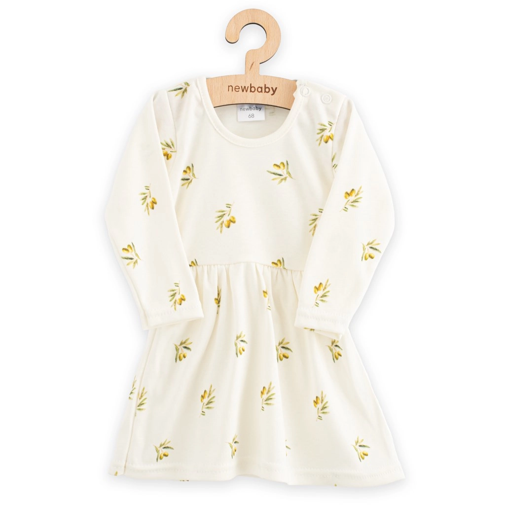 Elegantné a pohodlné detské šatočky New Baby Olivy potešia každú malú parádnicu. Vďaka organickej BIO bavlne sú mimoriadne hebké, priedušné a šetrné k pokožke, takže sa skvele hodia aj pre bábätká s alergiami či atopickým ekzémom. Nadýchaná suknička a veselá potlač olív dodajú outfitu jedinečný štýl na každý deň.