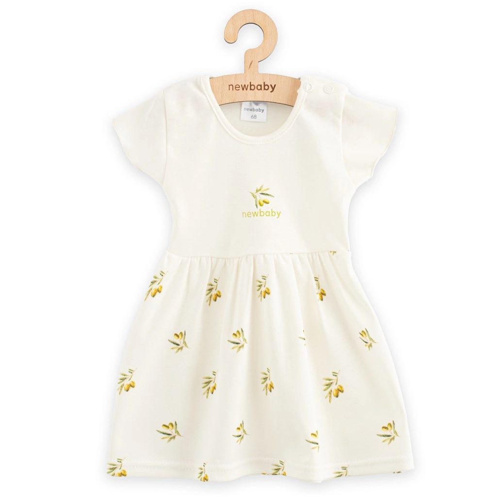 Štýlové šatočky pre malé parádnice z kolekcie New Baby Olivy potešia jemne riasenou sukničkou a hravou potlačou olív. Vďaka prírodnému materiálu sú šaty mäkké, priedušné a šetrné k pokožke, ideálne na každodenné nosenie.
