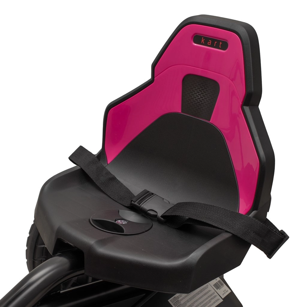 Ľahký, no odolný kovový rám a plastové kryty v atraktívnom štýle sa ľahko udržiavajú. Nastaviteľné sedadlo rastie s dieťaťom a plne krytý reťaz chráni malé prsty. Športový volant prináša realistický zážitok z riadenia a podporuje rozvoj motoriky a koordinácie.