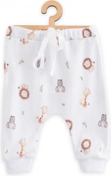Detské bavlnené tepláky jogger NEW BABY For Babies v dizajne safari zaujmú celoplošnou potlačou a príjemným strihom na každodenné nosenie. Pružný pás netlačí, uľahčuje obliekanie a ozdobná šnúrka dodáva štýl. Širšie lemy na nohaviciach zabezpečujú, že tepláčiky dobre držia a nevyhŕňajú sa.