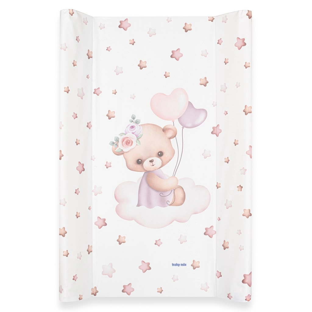 Prebaľovacia podložka BABY MIX v ružovej farbe s roztomilým motívom medvedíka je ideálnym pomocníkom na každodennú starostlivosť o bábätko. Ponúka pohodlnú plochu, zvýšené okraje pre vyššiu bezpečnosť a ľahko umývateľný povrch bez škodlivých látok.