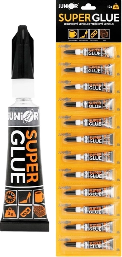 Univerzálne sekundové lepidlo s hmotnosťou 3 g na rýchle a pevné spájanie rôznych materiálov. Vhodné na keramiku, kožu, gumu, drev o aj korek. Predáva sa jednotlivo, dodávateľské balenie po 12 ks. Vhodné od 3 rokov.