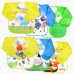 Vyberať môžete z niekoľkých veselých motívov, ktoré deti bavia a motivujú ku kreativite. Zástera sa jednoducho oblieka a prispôsobí drobnej postave detí od 2 do 4 rokov.