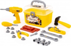 Pevný žltý kufrík s priehľadným vekom a západkou udrží nástroje bezpečne pokope a umožní jednoduché prenášanie kamkoľvek.