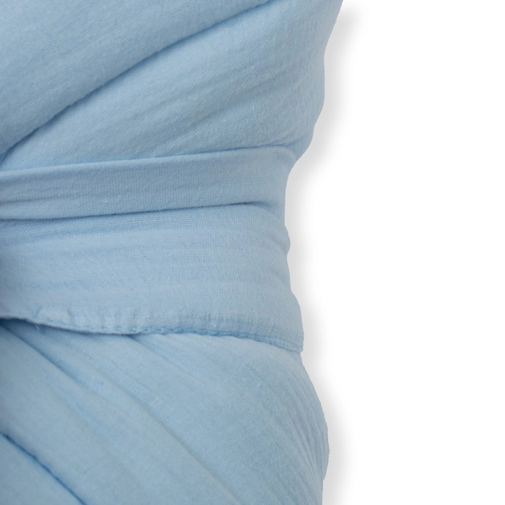 Starostlivo zvolené materiály sú bezpečné a šetrné k detskej pokožke. Poťah zo 100 % bavlny neobsahuje škodlivé látky, nedráždi a nefarbí. Antialergická výplň bráni množeniu mikroorganizmov a plesní. Praktické šnurovanie zaistí jednoduché a pevné zavinutie bez použitia gombíkov či kovových dielov.