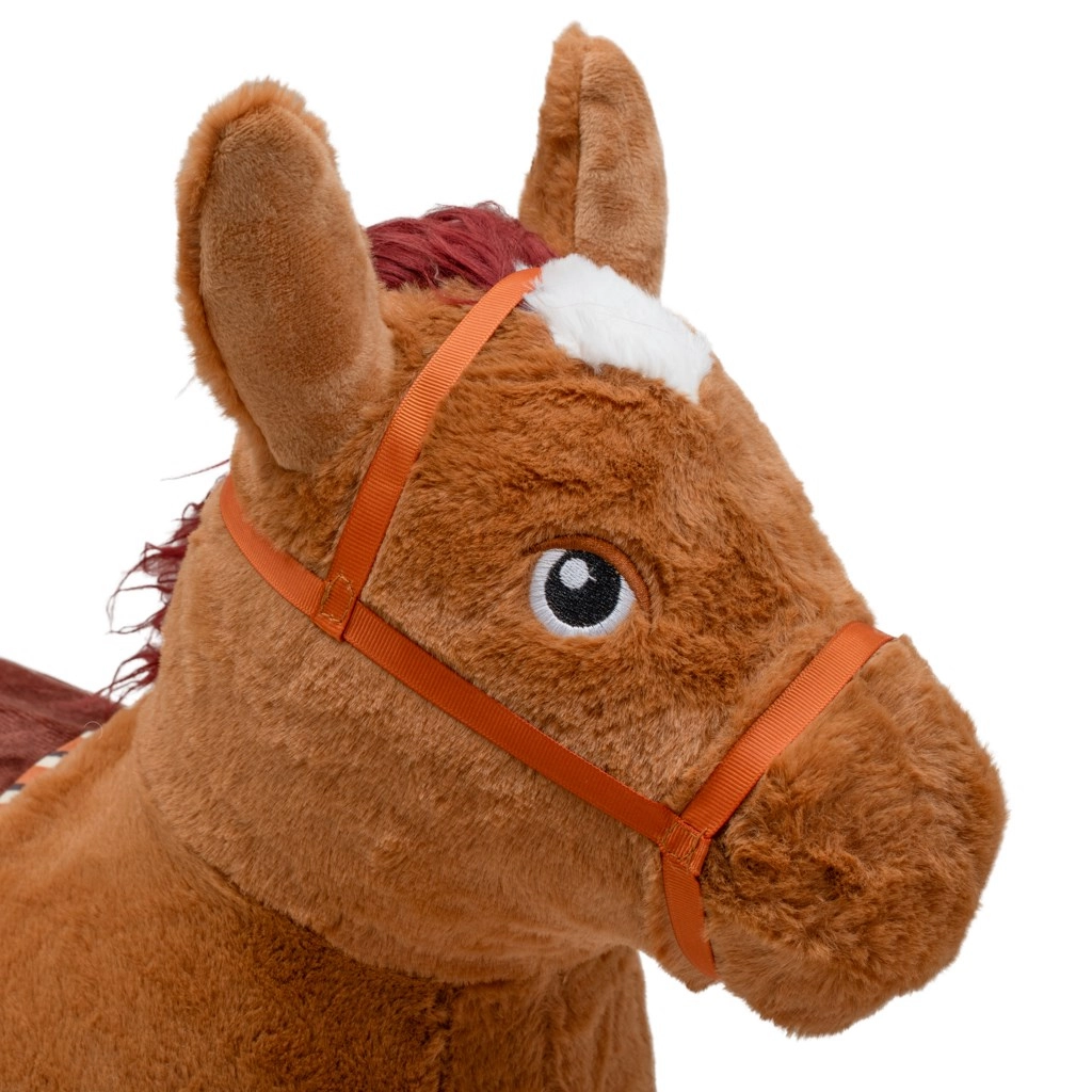 Plyšový skákací koník BABY MIX je ideálny parťák na aktívne hranie doma. Mäkké plyšové poťahovanie je príjemné na dotyk a zároveň protišmykové, takže skákanie je pohodlné a bezpečné. Po stlačení medzi ušami sa ozve realistický zvuk koníka, ktorý podporuje fantáziu a motivuje deti k pohybu.