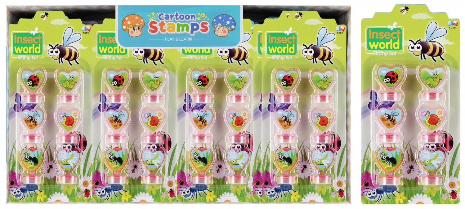 Veselé pečiatky s motívmi hmyzu na tvorenie a zdobenie. Sada obsahuje 6 pečiatok v rôznych variantoch, ideálne na ozdobenie zošitov, krabičiek, šperkovníc aj na výrobu originálnych pohľadníc. Kompaktné balenie 10 × 20 × 3 cm. Vhodné pre deti od 3 rokov.