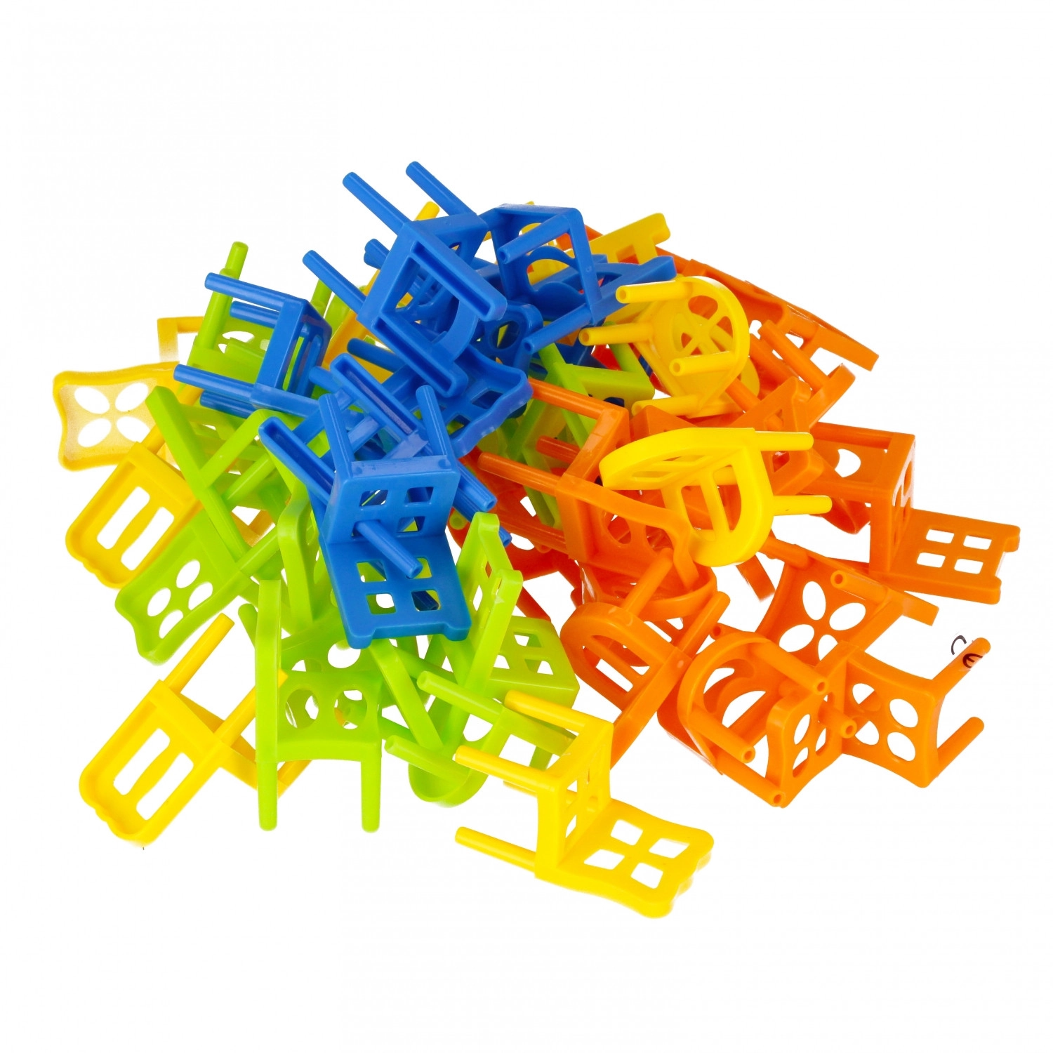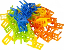 Zábavná rodinná hra, v ktorej hráči postupne ukladajú plastové stoličky do výšky a snažia sa zabrániť ich pádu. Sada obsahuje 60 stoličiek, rozvíja jemnú motoriku, trpezlivosť a strategiu. Ideálna spoločenská zábava pre deti od 3 rokov.