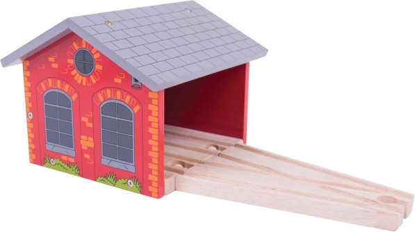 Rozšírte svoje koľajisko o štýlové tehlové depo, do ktorého pohodlne zaparkujete až dva vláčiky. Vďaka priloženej vjazdovej koľaji depo jednoducho napojíte na existujúcu trať a vytvoríte realistické zázemie na odpočinok, údržbu či tankovanie súprav. Robustná drevená konštrukcia a nadčasový dizajn zaručia dlhú životnosť a bezpečnú hru.