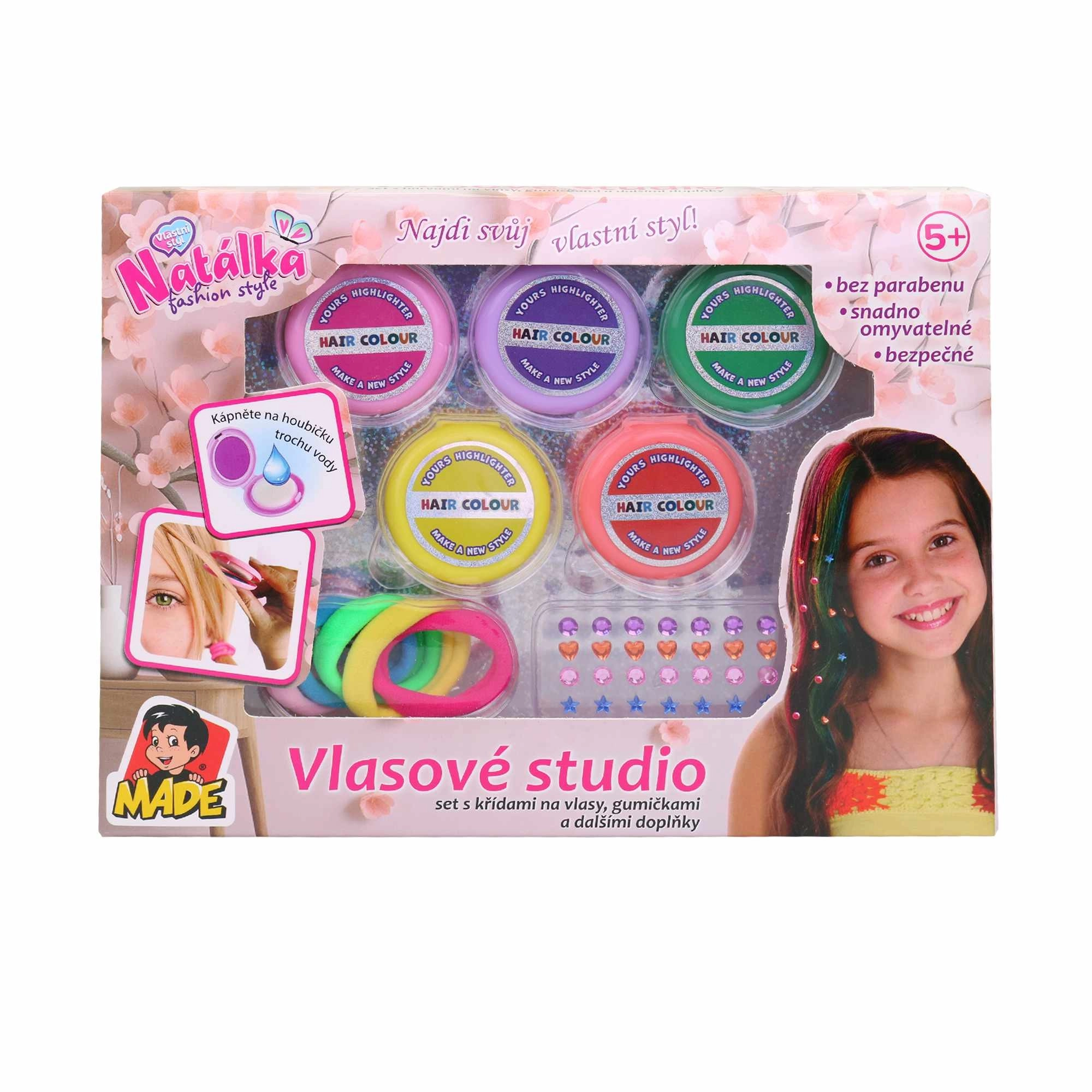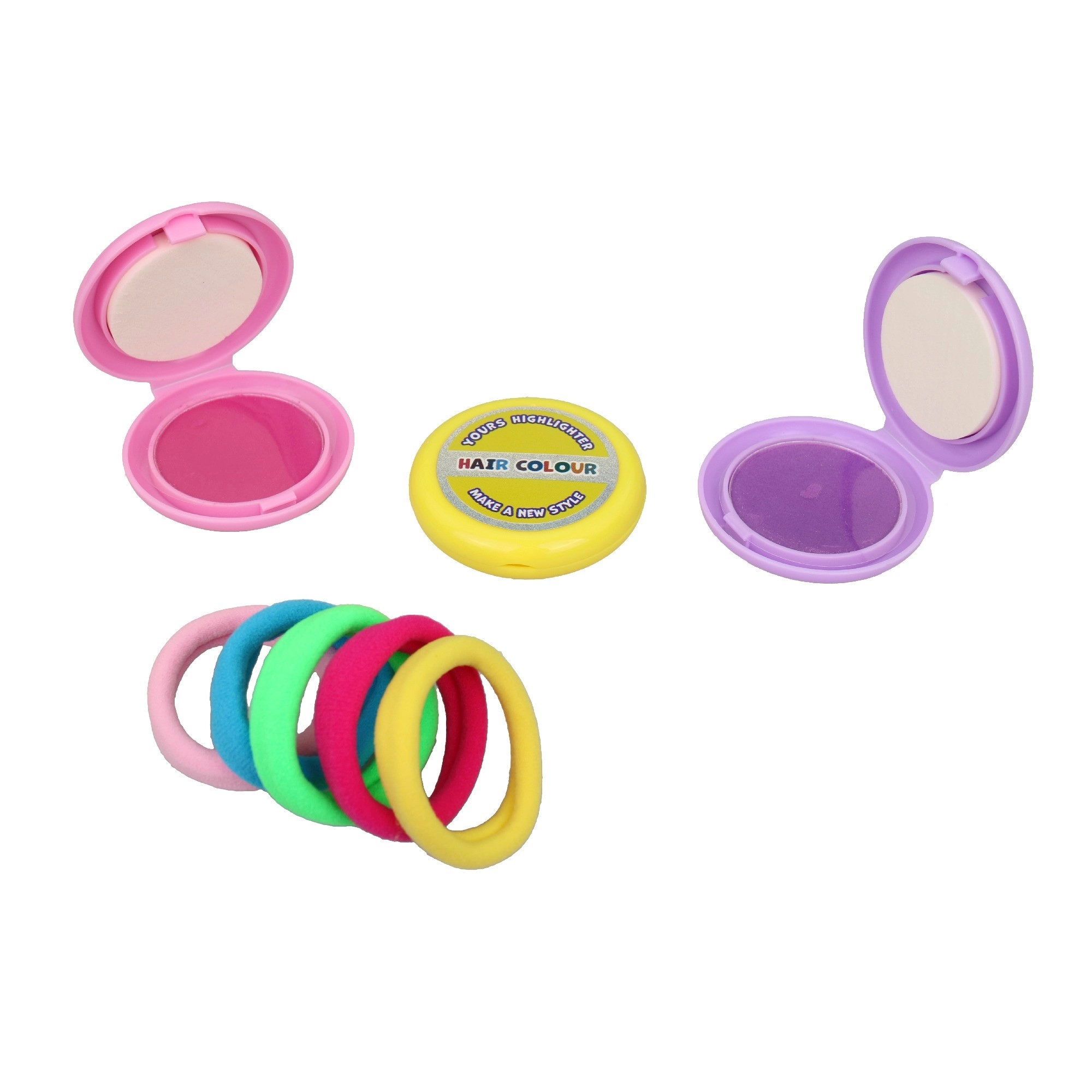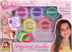 Balenie obsahuje všetko potrebné na dekorovanie: 5 farieb pre rôzne kombinácie, gumičky na fixáciu účesov a ozdobné kamienky pre trblietavý finiš. Ideálne na párty, fotenie alebo každodenné hranie. Vhodné pre deti od 5 rokov.