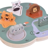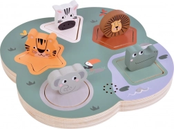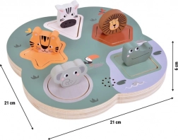 Doprajte deťom múdru hračku, ktorá spája hru, zvuky a farby. Drevené 3D puzzle so zvieratkami SAFARI motivuje k objavovaniu – po zdvihnutí každého dieliku sa ozve autentický zvuk zvieraťa, čo podporuje vnímanie, logické myslenie a prvé slovká napodobňovaním. Diely majú oblé tvary a sú pohodlné do malej detskej ruky.