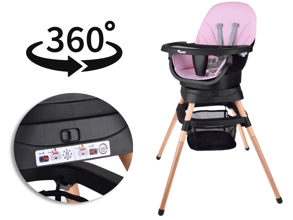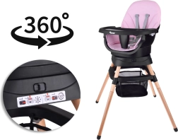 Táto multifunkčná stolička 6v1 sa ľahko prispôsobí každej fáze vývoja dieťaťa – od prvých príkrmov až po samostatné sedenie a hranie. Vďaka otočnému sedadlu 360° s 8 pozíciami aretácie a bezpečným päťbodovým pásom poskytuje maximálne pohodlie aj bezpečie. Odnímateľnú profilovanú tácku vyčistíte behom chvíľky pod tečúcou vodou alebo v umývačke.