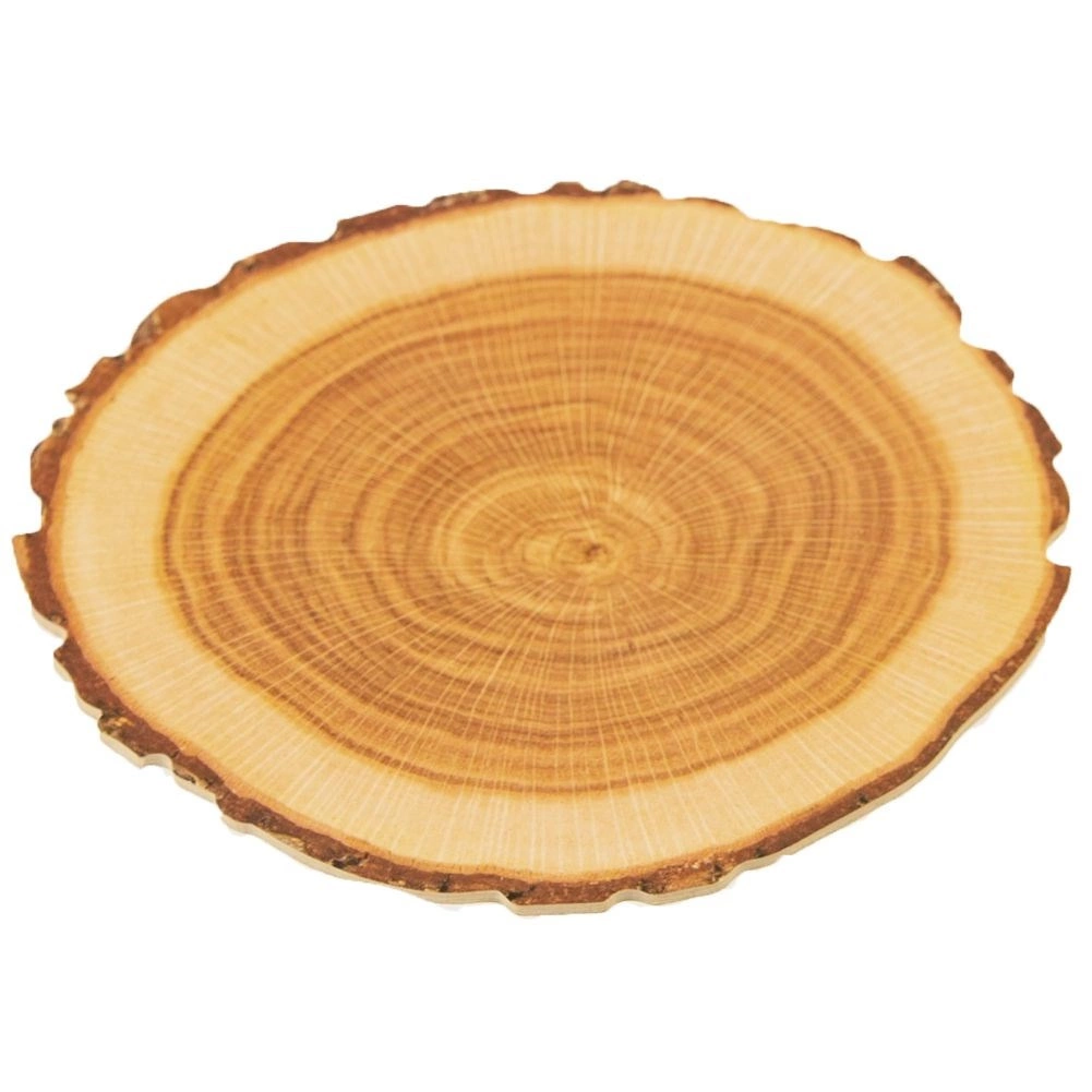 • Prírodný vzhľad: realistický motív dreveného rezu s „kôrou“ po okraji.