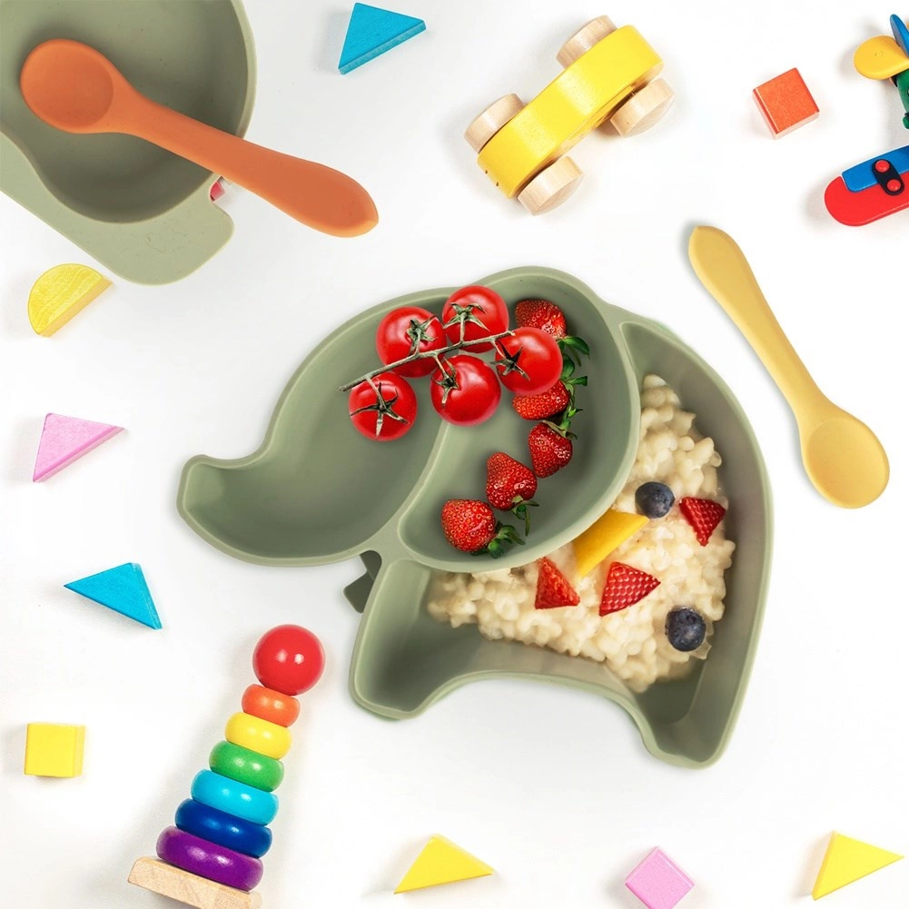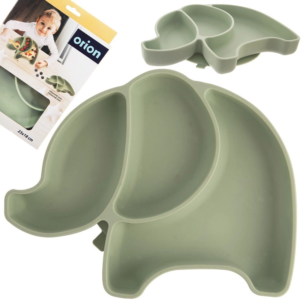 Detský silikónový delený tanierik slon, zelený 23,5 × 19 × 3,5 cm