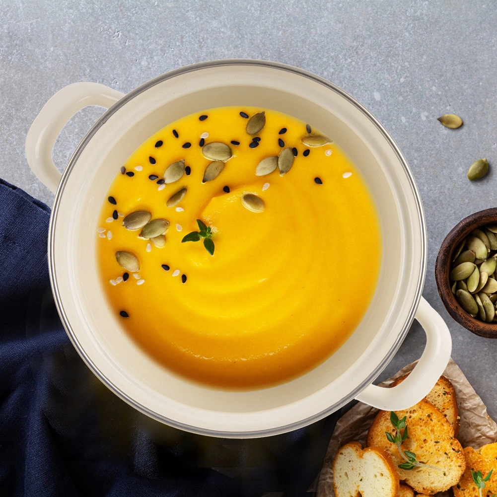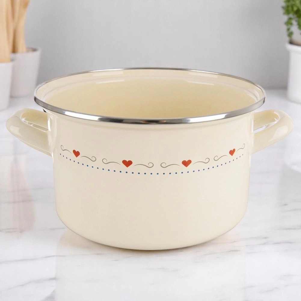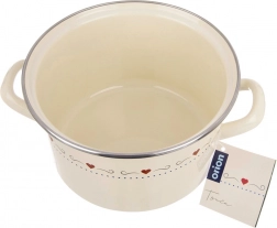 Krémový emajlovaný hrniec TONCA spája retro vzhľad s modernou funkčnosťou. Zdravotne nezávadná emajlovaná oceľ je hladká, ľahko sa čistí a je vhodná aj pre alergikov. Elegantný dekor srdiečok a nerezový lem dodávajú nádobe odolnosť aj šmrnc pre každodenné varenie aj servírovanie priamo na stôl.