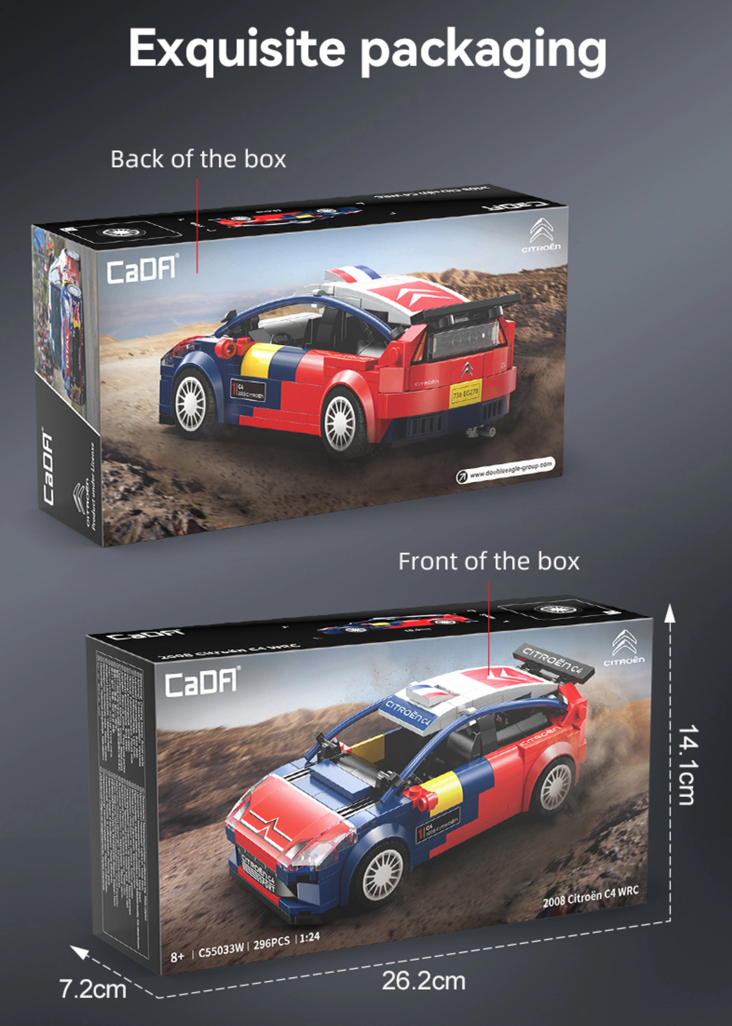 Užite si precíznu stavbu a pôsobivý vzhľad licencovaného modelu CITROËN C4 WRC. Stavebnica CaDA ponúka vyváženú kombináciu ľahkej stavby a výborného spracovania, vďaka čomu vznikne statický model s hladkým pojazdom, pripravený na výstavku aj hravé pojazdy po rovnom povrchu.