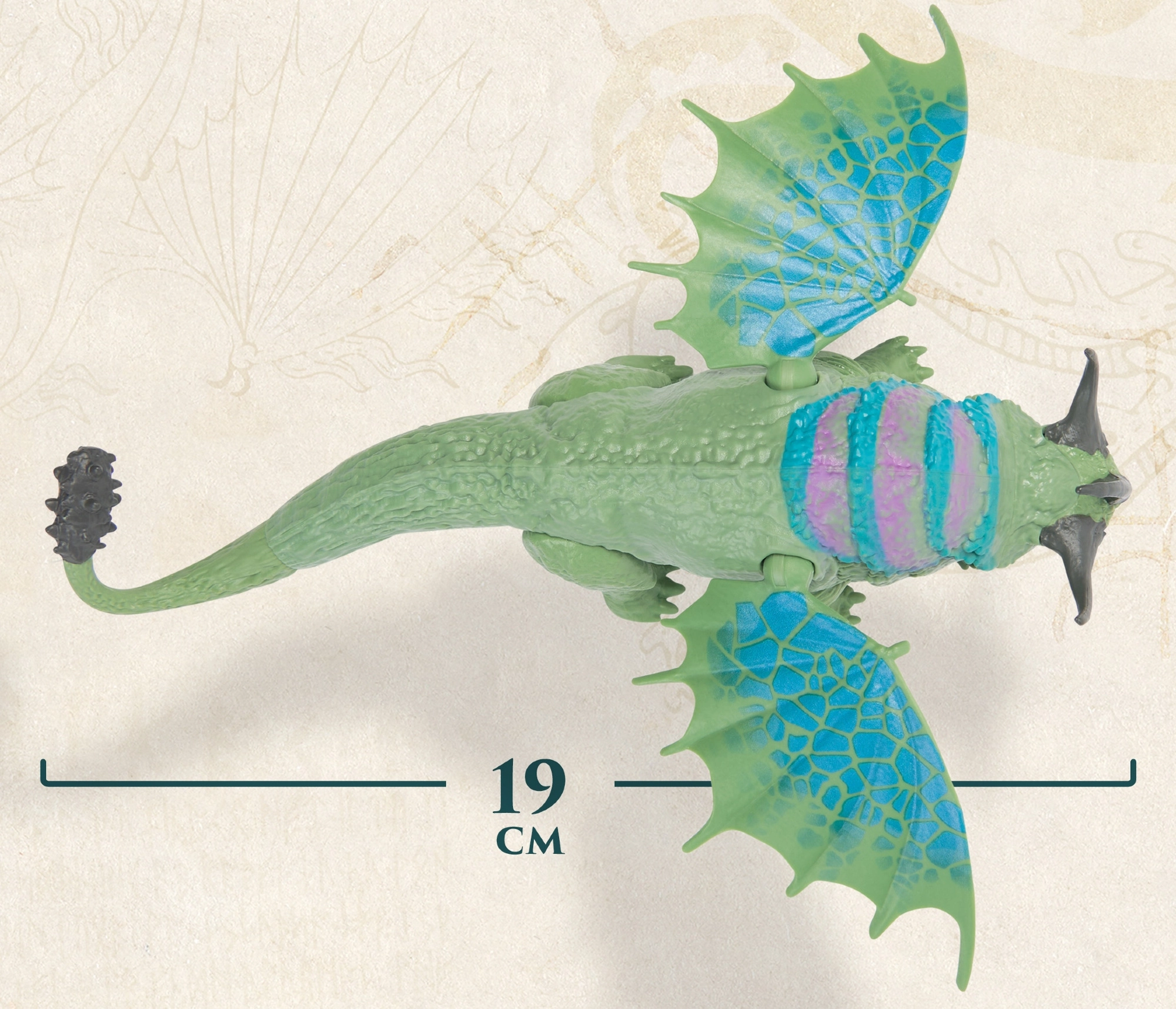 Figúrka Rumblehorn zaujme masívnou postavou, výraznými rohmi a veľkými krídlami s unikátnym vzorom. Je inšpirovaná filmovým svetom DREAMWORKS Dragons a verne zachytáva vzhľad obľúbeného draka. Pohyblivé kĺby umožňujú dynamické pózy – od vzletu nad Berk až po bojové postoje.