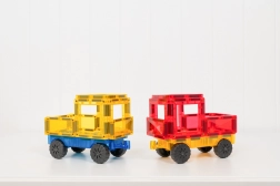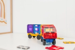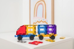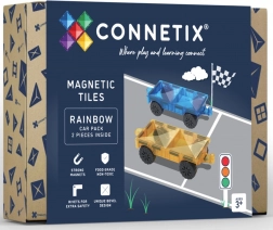 Sada CONNETIX Rainbow Car Pack prináša dve priehľadné mobilné základne v modrej a žltej farbe s hladko sa otáčajúcimi kolesami. Ľahko ich prepojíte s ostatnými magnetickými dielikmi CONNETIX a behom chvíľky vytvoríte vlastné autá, nákladné vozidlá či vláčiky. Silné neodýmové magnety držia stabilne zo všetkých strán a charakteristické „kliknutie“ pri spojení dielikov pridá stavaniu na radosti.