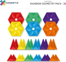 Sada obsahuje 6 šesťuholníkov, 12 rovnostranných trojuholníkov, 12 rovnoramenných trojuholníkov a inšpiratívnu brožúru s nápadmi. Priesvitné, farebné diely z odolného ABS s neodýmovými magnetmi sa spoľahlivo spoja z každej strany a tvoria pevné konštrukcie – od veží a mostov po kaleidoskopické vzory.