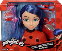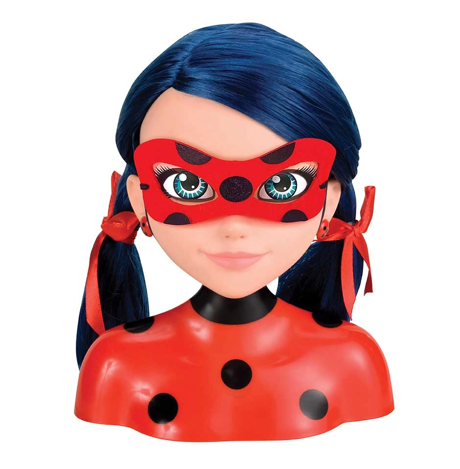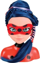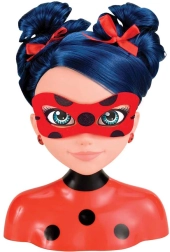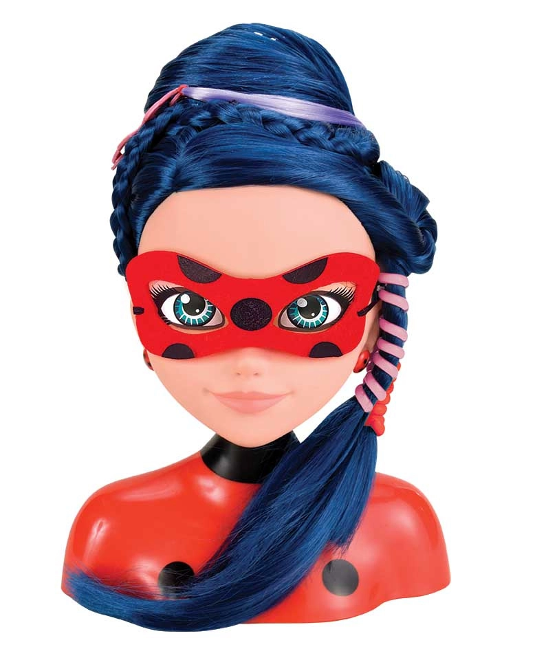 Stylingová hlava Marinette inšpirovaná seriálom MIRACULOUS má jemné črty, výrazné modré oči a dlhé, hebké tmavomodré vlasy, ktoré sa ľahko upravujú. Stabilný bustový podstavec uľahčuje česanie a vystavenie v detskej izbe.