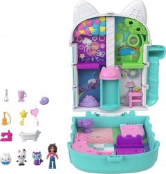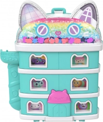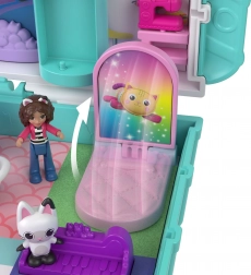 Kompaktný mačací domček Polly Pocket prináša deťom bohatý svet fantázie v malom, prenosnom puzdre. Po otvorení sa odhalia viacposchodové interiéry s tematickými izbičkami, trblietavou kupolou a pohyblivými prvkami, ktoré pozývajú k príbehom inšpirovaným GABBY’S DOLLHOUSE.