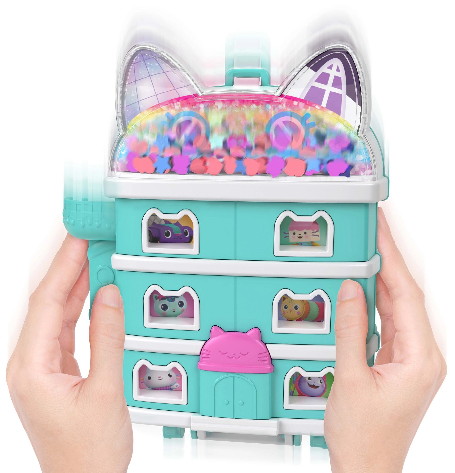 Presúvajte Gabi a mačacích kamarátov medzi poschodiami pomocou ľahko ovládateľného posuvníka. Deti tak prirodzene prepájajú jednotlivé izbičky a vytvárajú nové príbehy.