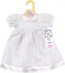 Elegantné biele šatočky pre bábiky veľkosti 39–46 cm z kolekcie DOLLY MODA od značky ZAPF CREATION. Majú klasický strih s golierikom, krátkymi nariasenými rukávmi a jemnou výšivkou. Ľahké obliekanie zaisťuje zapínanie na suchý zips. Súčasťou je plastové ramienko. Ideálne na slávnostné hry – krstiny, rodinné oslavy aj fotenie.
