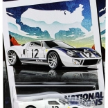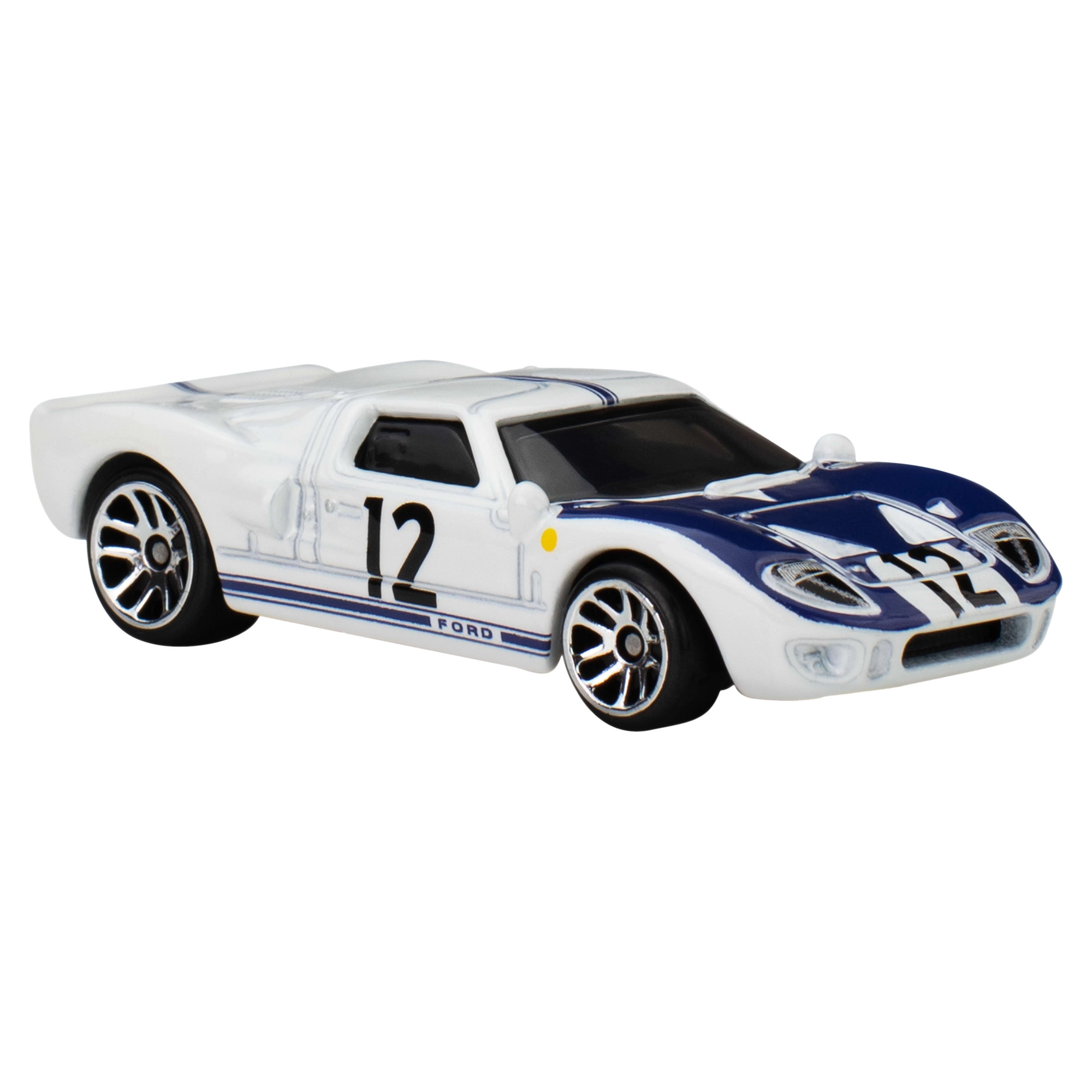 Ikonický model FORD GT40 zo série Hot Wheels Silver Series – National Icons v mierke 1:64. Kovová karoséria, realistické detaily, pohyblivé kolesá a biely lak s modrými pruhmi a číslom 12 potešia deti aj zberateľov.