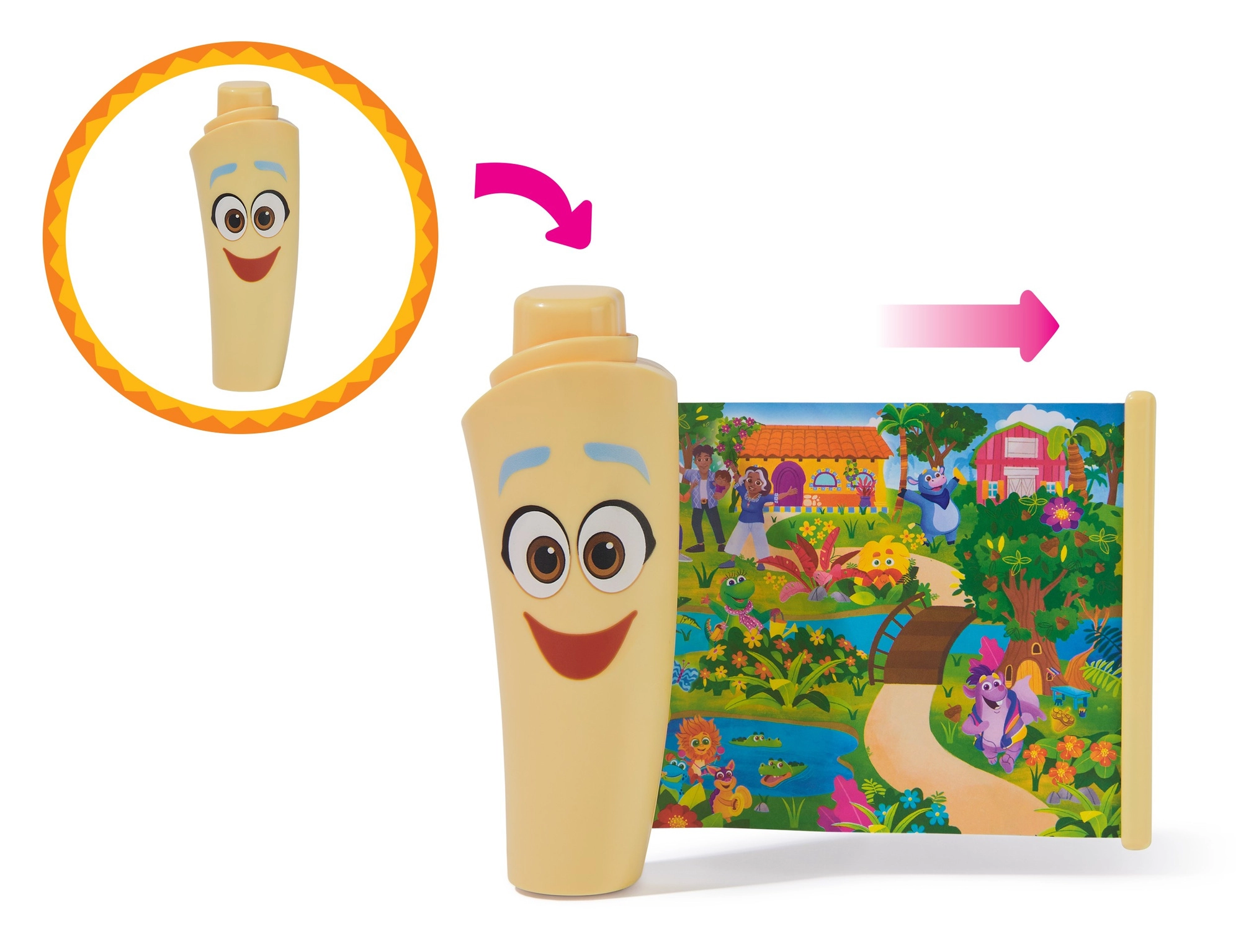 Vysúvacia obrázková mapa a farebný kompas pozývajú k plánovaniu dobrodružstiev. Deti si precvičia orientáciu a rozprávanie príbehov.