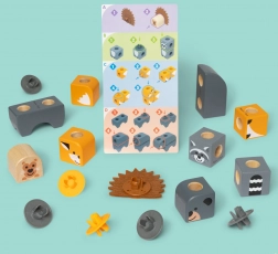 Diely s potlačami zvieracích tvárí a tiel možno kombinovať do roztomilých postavičiek aj vlastných výtvorov. Podporuje predstavivosť a samostatnú hru.