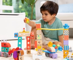 Masívne, hladké drevené diely sa skvele držia a ľahko sa skladajú do veží aj jednoduchých stavieb. Perfektné na tréning koordinácie a rovnováhy.