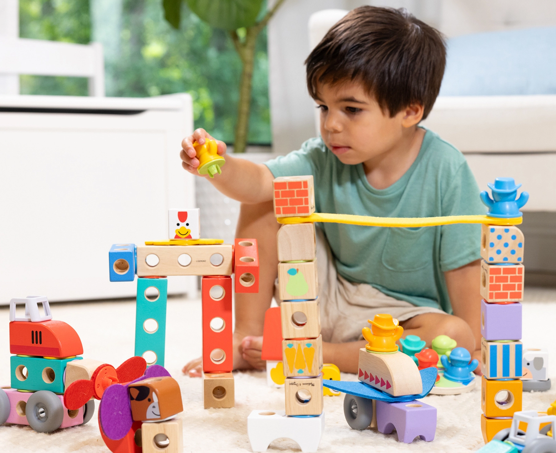 Táto kreatívna sada od značky MELISSA & DOUG prináša roztomilé lesné motívy a zvieracie postavičky, ktoré možno skladať, vyvažovať a kombinovať do najrôznejších stavieb. Hladké, príjemne zaoblené diely sú ideálne na prvé stavebné pokusy a podporujú senzorický rozvoj aj predstavivosť.