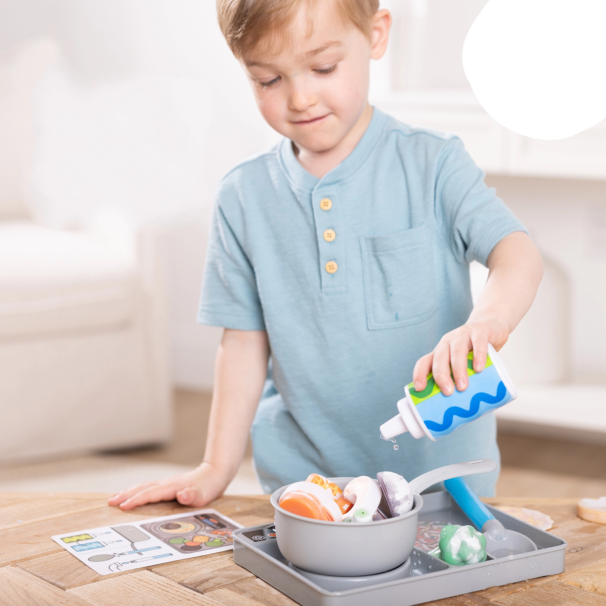 Súprava Simmer & Stir je navrhnutá tak, aby deťom realisticky priblížila varenie a zároveň podporovala zručnosti každodenného života. Vďaka farebne meniacim sa potravinám (z „mrazených“ na „uvarené“) deti okamžite vidia, čo sa stane po polievaní vodou z fľaštičky alebo po naberaní a miešaní lyžicou.