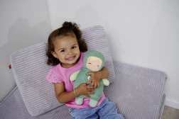 Bábika má sympatický výraz, mäkké zaoblené tvary a je ľahká, takže sa skvele drží aj najmenším deťom. Ideálna ako darček pre novorodencov aj batoľatá – na spoločné čítanie, cestovanie aj večerné zaspávanie.