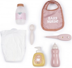 Súčasťou je všetko na každodenné hranie a napodobňovanie skutočnej starostlivosti: fľaštička na mlieko, teplomer, sirup s lyžičkou, dávkovač na šampón, podbradník a plienka pre bábiku. Set rozvíja kreativitu, jemnú motoriku a učí zodpovednosti a nežnej starostlivosti.