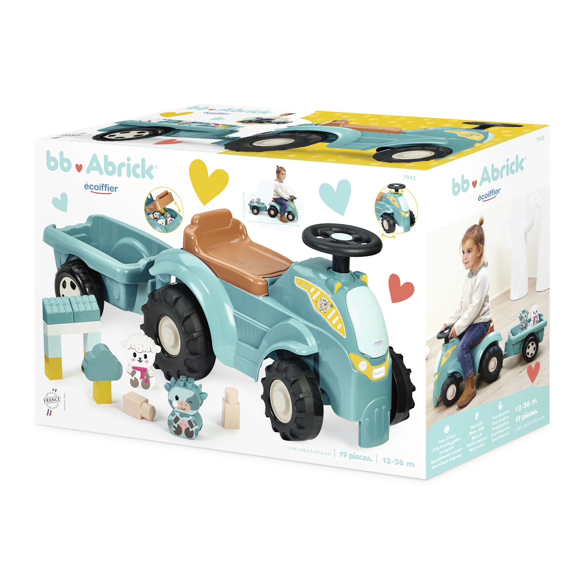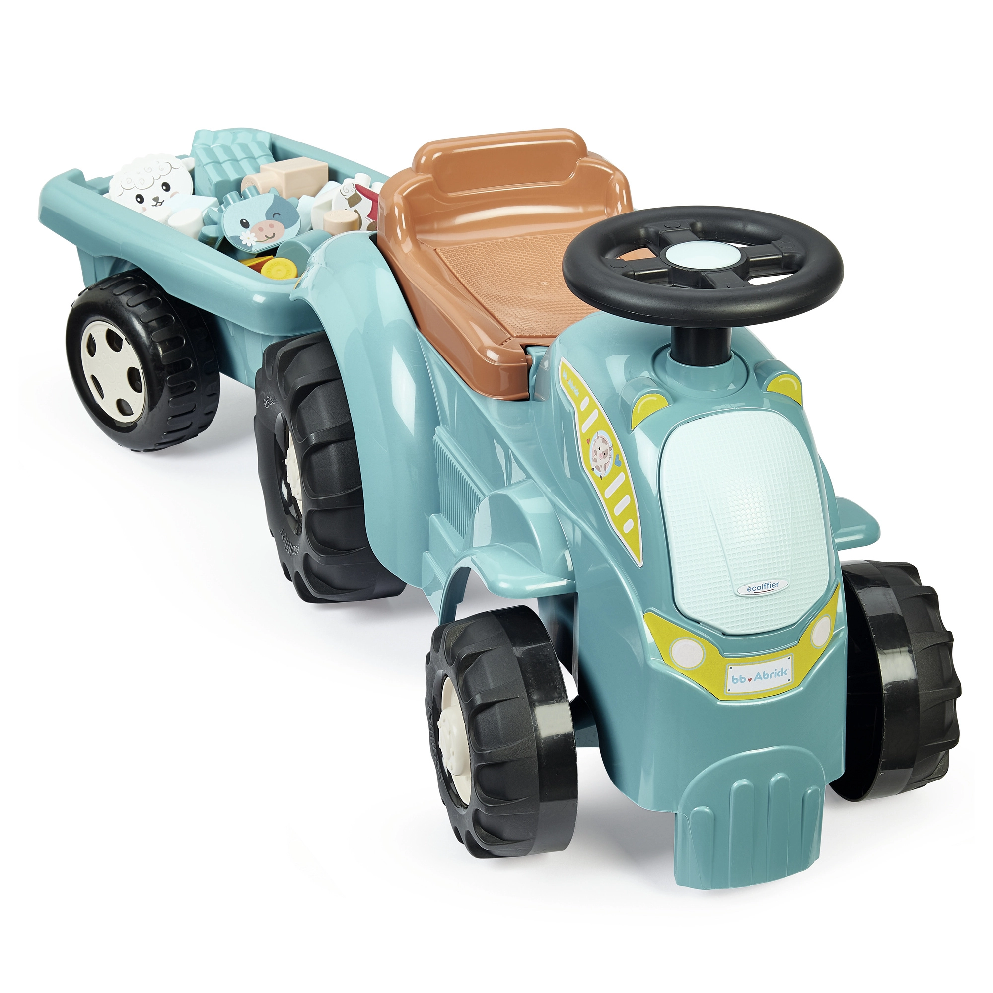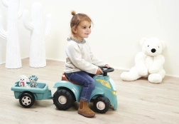 Tento robustný detský traktor s prívesom od značky ÉCOIFFIER z radu ABRICK je stvorený na prvé preteky po obývačke aj záhrade. Vďaka veľkým kolesám a pohodlnému sedadlu je jazda stabilná a bezpečná, zatiaľ čo odpojiteľný príves poberie kocky aj obľúbené hračky. Praktický schovávací priestor pod sedadlom udrží drobnosti vždy po ruke.