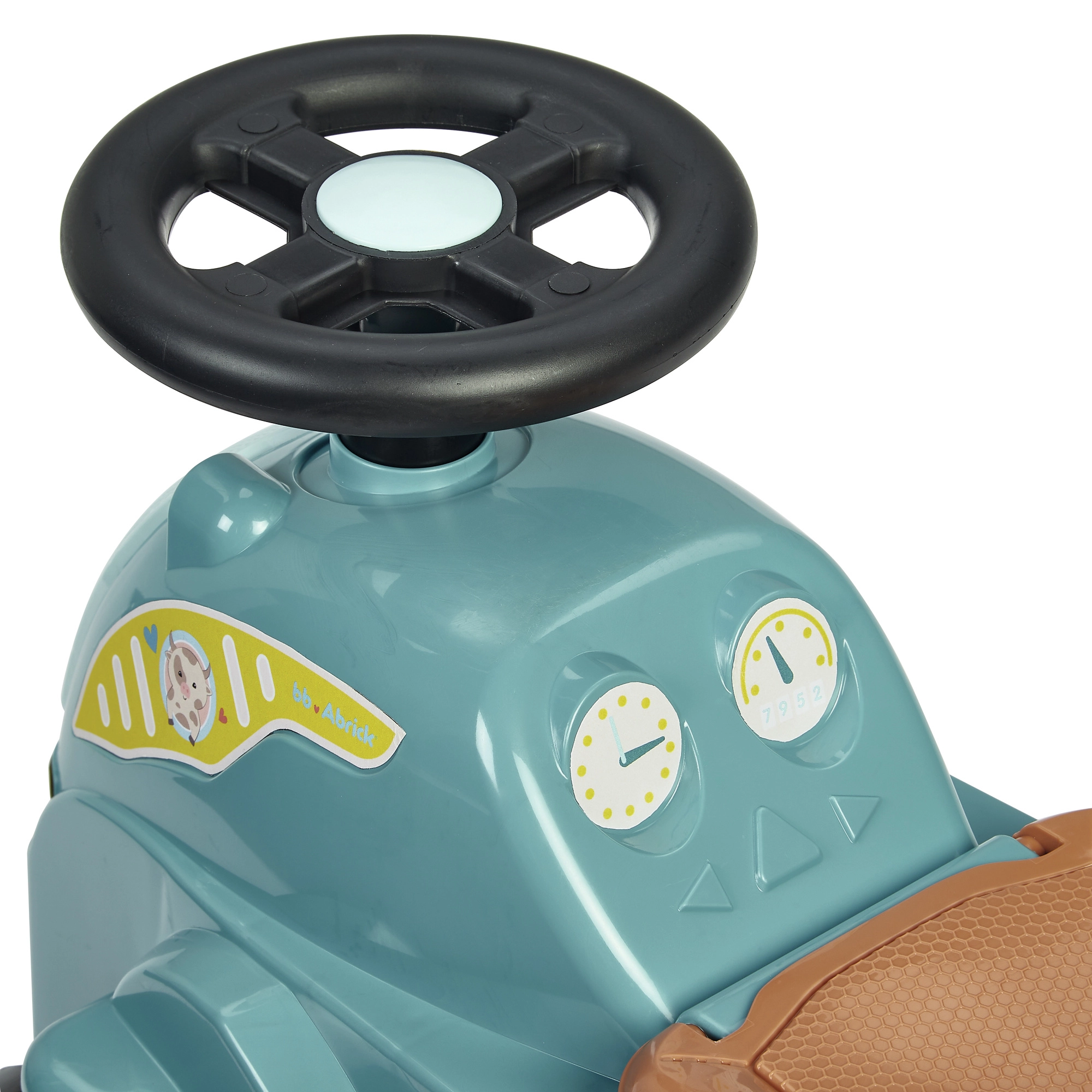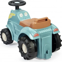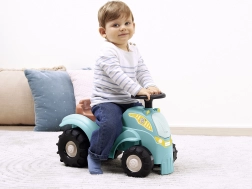 Toto odrážadlo traktor v tyrkysovo/modrej farbe s hnedým sedadlom a masívnymi čiernymi kolesami je navrhnuté pre najmenších jazdcov. Vďaka robustnému plastovému telu a širokému rozchodu kolies je jazda stabilná a bezpečná, zatiaľ čo kompaktné rozmery uľahčujú používanie v interiéri na koberci aj hladkej podlahe.