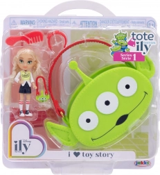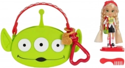 Mini bábika s dlhými blond vlasmi je oblečená do módnej sady s motívom mimozemšťana z TOY STORY. Outfit dopĺňajú športové topánočky a mini kabelka v tvare hlavy mimozemšťana. Súčasťou je aj veľká ružová prenosná taška s motívom mimozemšťana, do ktorej jednoducho uložíte bábiku aj jej drobnosti – ideálne na hranie doma aj na cestách.