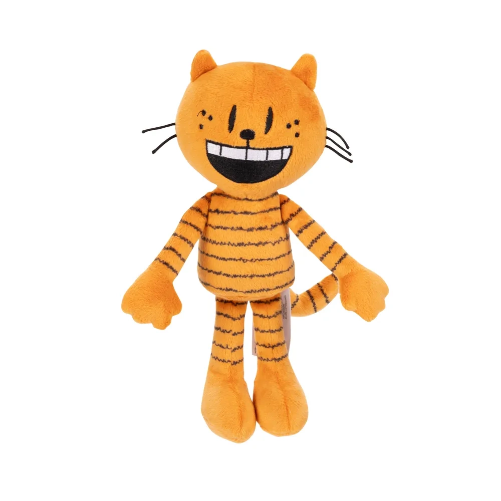 Plyšový kocúr Petey poteší všetkých fanúšikov príbehov DOG MAN. Oranžové telíčko s čiernymi pruhmi, široký úsmev a dlhé končatiny priamo vyzývajú k objatiu. Mäkká výplň a hebký povrch sú príjemné na dotyk a bezpečné aj pre menšie deti vďaka vyšívaným prvkom.