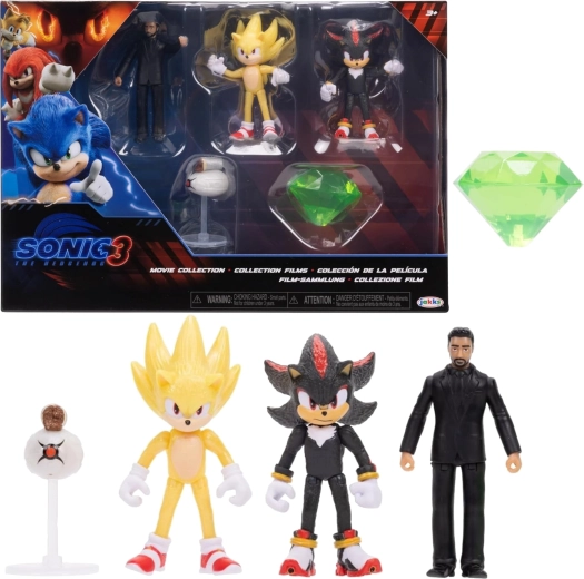 - 3 figúrky (Sonic, Shadow, Agent Stone) + 2 doplnky (Buzz Bomber, zelený Chaos Emerald)