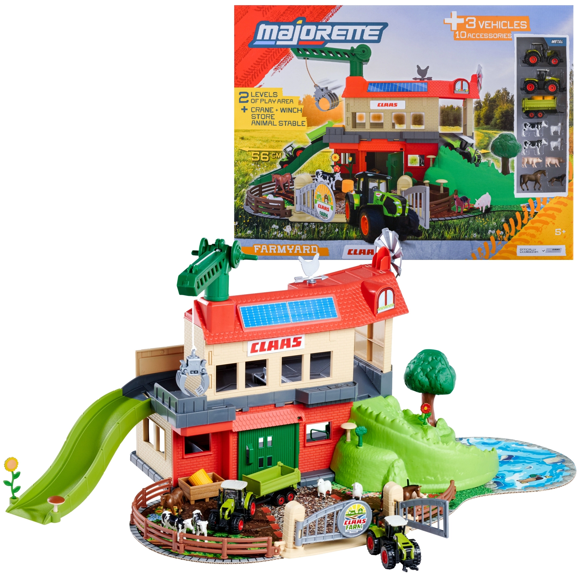 Objavte rozšírený farmársky set od značky Majorette s oficiálnou licenciou CLAAS, ideálny na kreatívnu hru. Zahŕňa 2 traktory v mierke 1:64, príves, 10 figúrok zvierat a dvojúrovňovú stodolou s rampami a funkčným žeriavom. Vďaka množstvu doplnkov a pohyblivým prvkom deti realisticky prevážajú náklad, starajú sa o zvieratá a budujú vlastnú farmu.