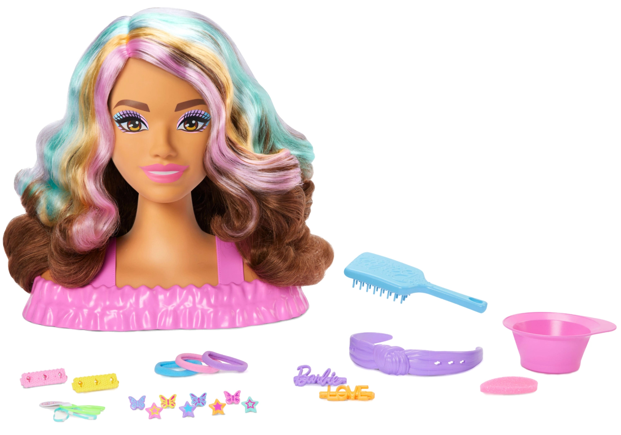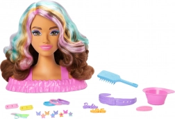 Staňte sa malou kaderníčkou s hlavou na česanie BARBIE a bohatou sadou doplnkov. Dlhé hnedé vlasy s pastelovými prúžkami lákajú k tvorbe vrkočov, drdolov aj copíkov. Súčasťou sú klipy a gumičky, kefa, čelenka a zábavné efekty zmeny farby pri sponkách aj perách pomocou hubky. Ideálne na kreatívnu hru a rozvoj jemnej motoriky.