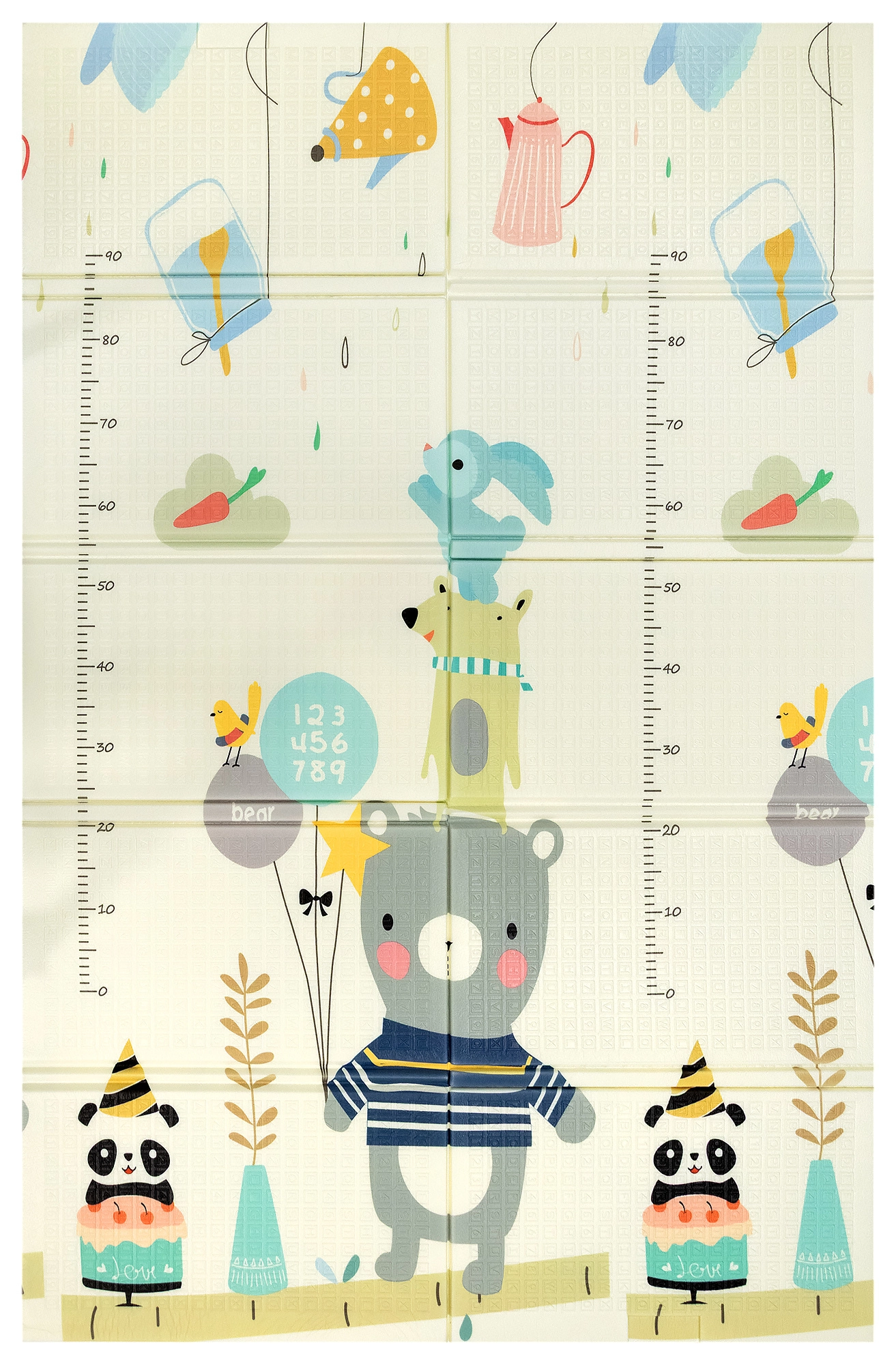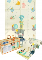 Objavte univerzálnu podložku, ktorá rastie s vaším dieťaťom od prvých dní života. Vďaka hrúbke 1 cm skvele izoluje od chladu a tlmí nárazy, takže je ideálna na bezpečné hranie, lezenie a prvé krôčiky. Obojstranný dizajn ponúka na jednej strane rozkošné pandy a na druhej zvieratká s číslami a rastovým metrom, čo podporuje raný vývin a učenie.