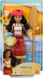 Bábika Moana prináša deťom atmosféru polynézskych dobrodružstiev. Má dlhé, vlnité vlasy na česanie, detailný outfit s potlačou a štýlové doplnky. Vďaka artikulácii možno bábiku ľahko polohovať a oživovať obľúbené scény z filmu.