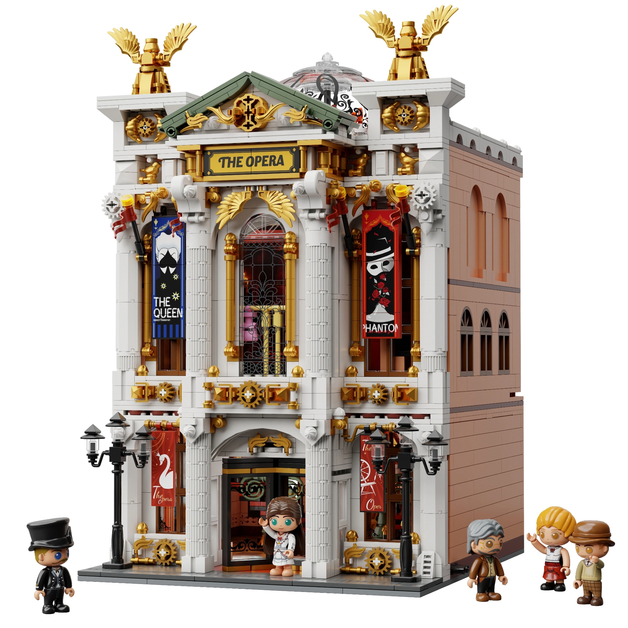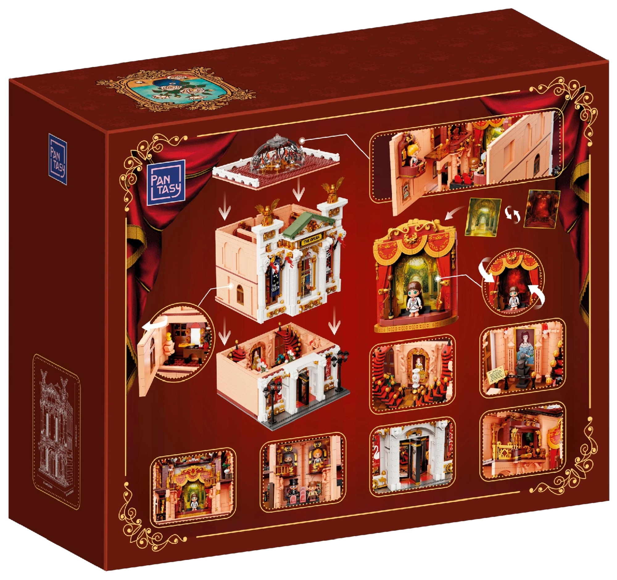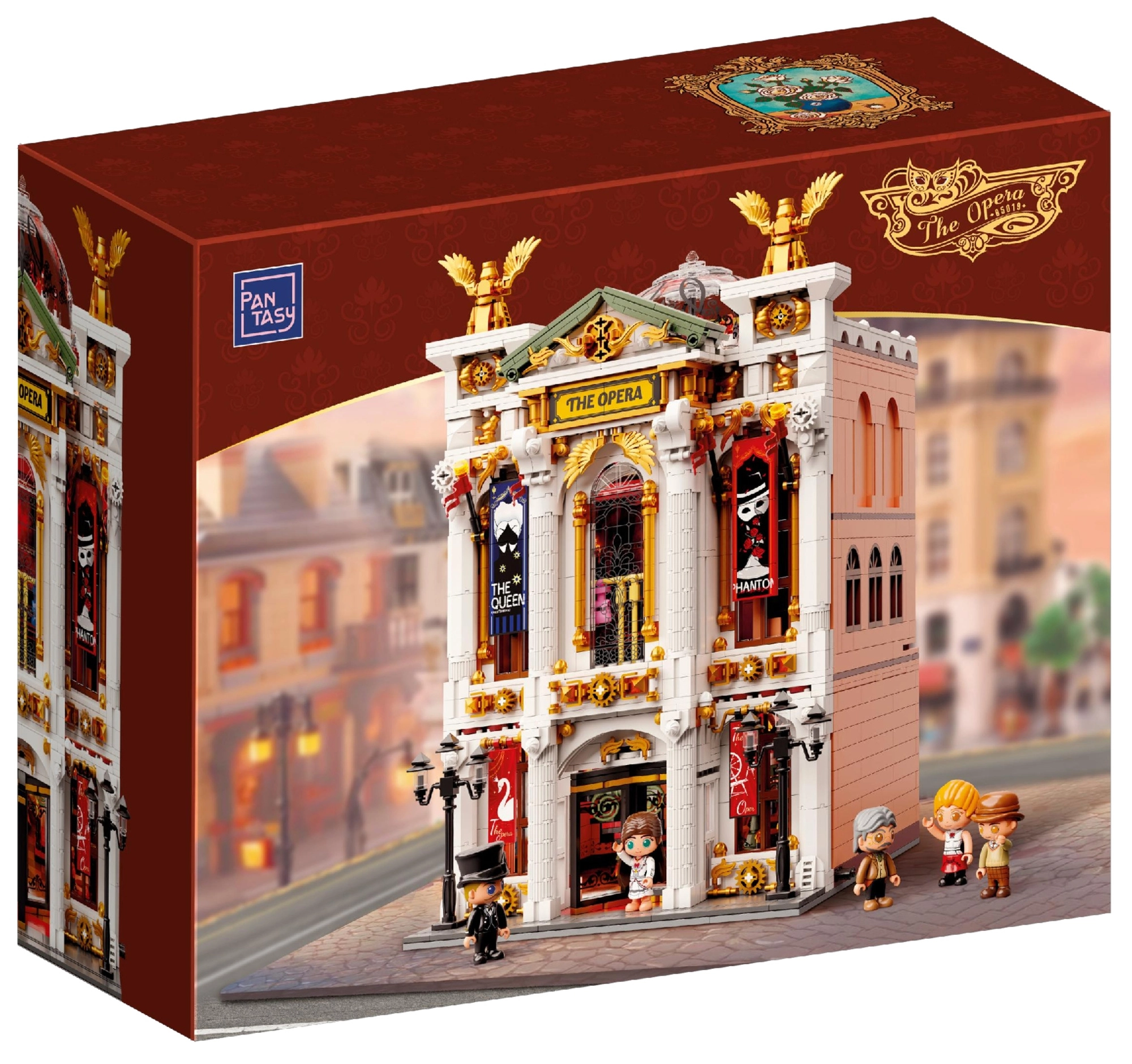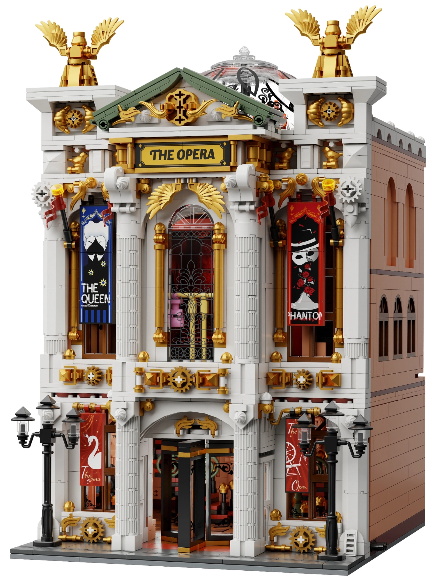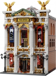 Táto zberateľská stavebnica prináša atmosféru veľkolepej opery priamo na váš stôl. Fasáda so zlátenými detailmi, stĺpmi, bannermi a pouličnými lampami zaujme na prvý pohľad, zatiaľ čo interiér a vstupná časť pozývajú k inscenovaniu vlastných príbehov.