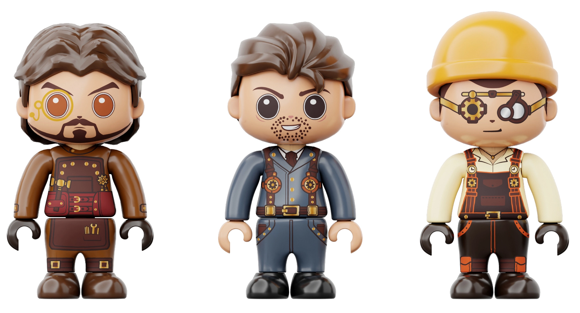 Súprava obsahuje štýlizované minifigurky vynálezcu, kováča a tajomného hosťa – ideálne na vymýšľanie vlastných dobrodružstiev.