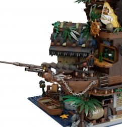 Vdýchnite život príbehom z morí s bohato prepracovanou stavebnicou pirátskej hospody. Konštrukcia kombinuje rustikálne drevo, reťaze, sudy, lampáše a symbol lebky so skríženými hnátmi, nechýba plachta, vlajka ani funkčné detaily ako dvere, žeriav alebo malý čln. Model nadchne deti aj dospelých staviteľov a stane sa výraznou ozdobou zbierky.