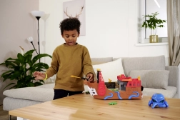 Zdvihnite palubu a spustite kovové autíčko po integrovanej dráhe. Pomocou pák rozhodnite, či auto preletí bránou, skončí vo väzení alebo vyrazí z raftu.