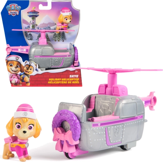 Vianočná helikoptéra Skye od značky Spin Master prináša deťom autentickú atmosféru seriálu PAW PATROL. Štýlový sivo-ružový vrtuľník so sviatočným vencom na prídi má otvárateľný kokpit, do ktorého možno usadiť figúrku Skye v zimnej čiapke. Vďaka otáčajúcemu sa rotoru a trom kolieskam si deti užijú pristávanie aj „let“ po izbe.